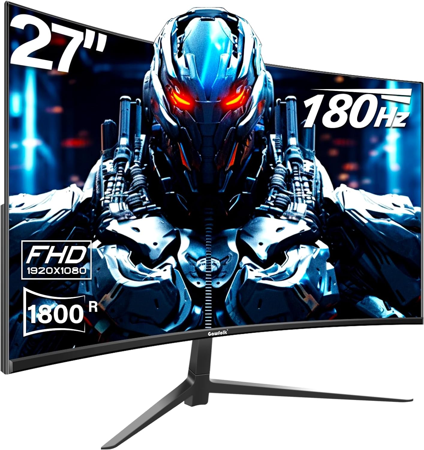 Gawfolk 27 inch Gaming Monitor 144hz/180hz Curved Monitor Full HD 1080P 1800R Computer Display